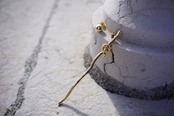 左右でデザインの異なる、アシンメトリーで個性的なピアス。